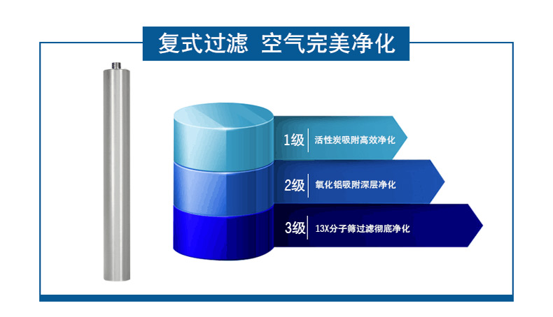 壓縮機的工作環(huán)境必須清潔無塵,空氣通過過濾器進入壓縮機。經(jīng)過一級進氣閥,一級壓縮開始。壓縮機在壓縮過程中,機身,閥門,活塞,氣缸,和潤滑油產(chǎn)生的熱量靠冷卻風扇轉(zhuǎn)動使空氣流動散熱。其余熱量通過連接不同壓縮過程的冷卻管散熱。壓縮后的空氣的溫度僅僅比常溫高幾攝氏度。根據(jù)不同的氣候條件,吸入空氣有一定濕度百分比。在壓縮.冷卻過程中,濕氣凝結(jié)和形成期間氣體隨著小油粒形成白色乳狀液沉淀在分離器中。